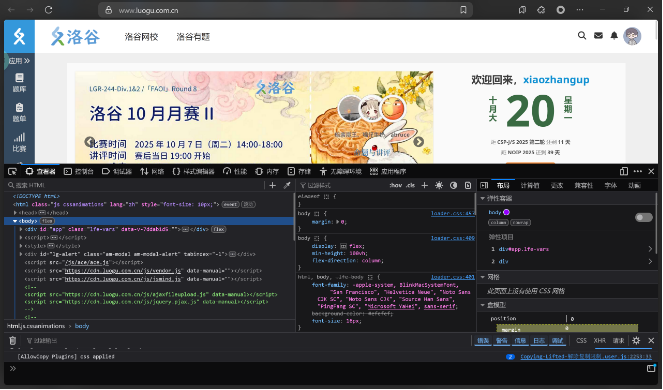 登陆后在洛谷的任何界面都行,让我们按下键盘上的 F12 按钮。